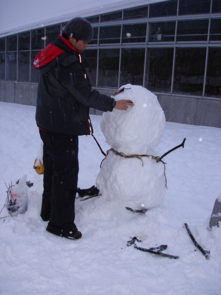 下圖就可以看到他辛苦的成果, 旁邊的小雪人是我做的