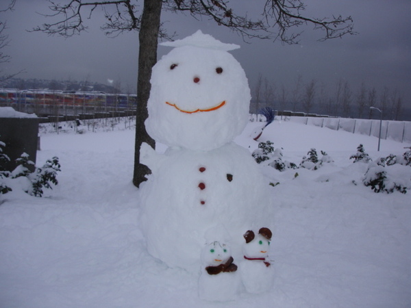 連續幾天的大雪, 讓我們有充足的雪可以堆雪人